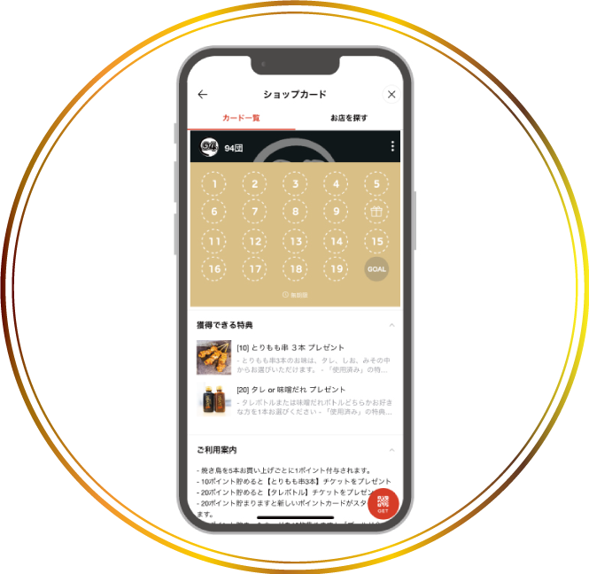 94団では「お買い上げ毎にポイントが貯まる」94団ポイントカード(LINEアプリ)を発行しています。